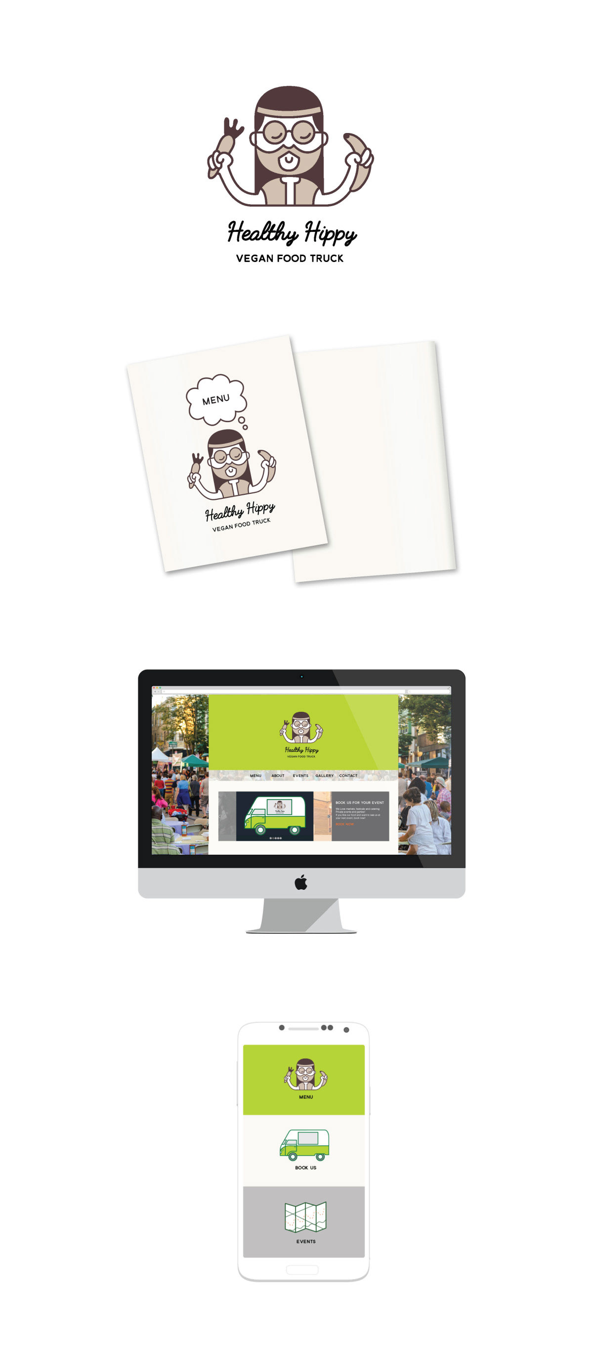 Branding rollout for the ‘Healthy Hippy’, vegan food truck. Designs include logo, menu, website and app development.